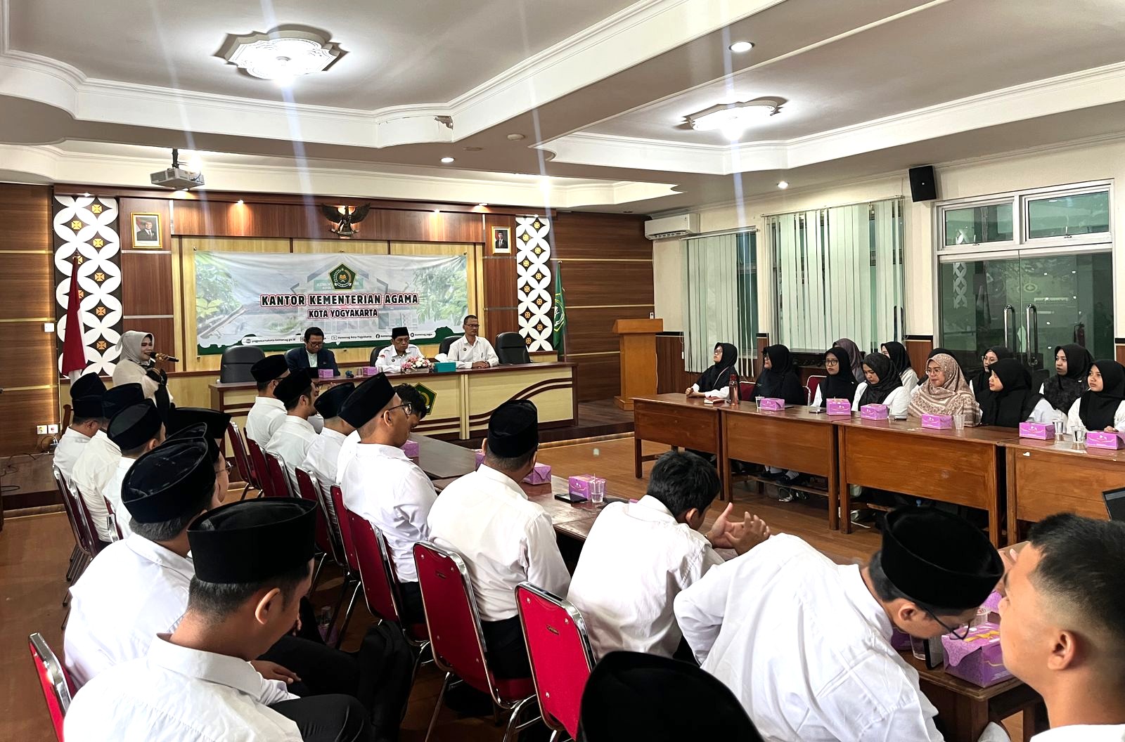 Yogyakarta — Calon Pegawai Negeri Sipil (CPNS) Kantor Urusan Agama (KUA) Kemantren Umbulharjo mengikuti kegiatan Pembinaan Mental Pegawai yang diselenggarakan oleh Kantor Kementerian Agama Kota Yogyakarta, Selasa (30/12/2025). Kegiatan ini berlangsung di Aula 1 Kantor Kemenag Kota Yogyakarta mulai pukul 08.00 WIB hingga 11.45 WIB.