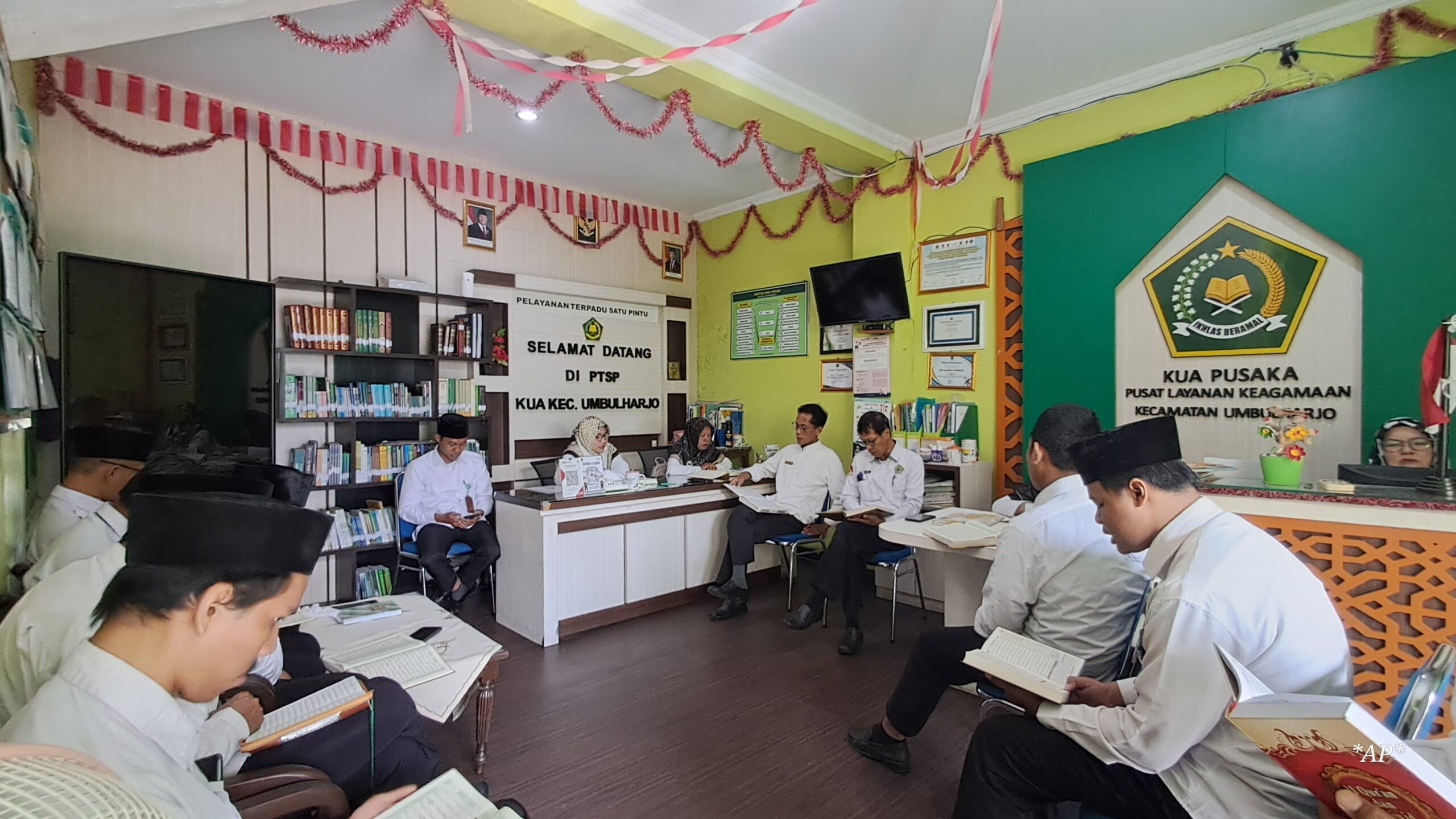 Umbulharjo – Selasa, 9/12/ 2025, KUA Umbulharjo melaksanakan koordinasi rutin Selasa pagi yang diawali dengan tadarus Al-Qur’an yang dipimpin oleh bapak Mahlani. Kegiatan dilanjutkan dengan rapat koordinasi yang dipimpin oleh Kepala KUA Umbulharjo, Bapak Sehona,S.Ag, yang menekankan pentingnya ketertiban kantor serta optimalisasi tugas penyuluhan masing-masing pegawai.
