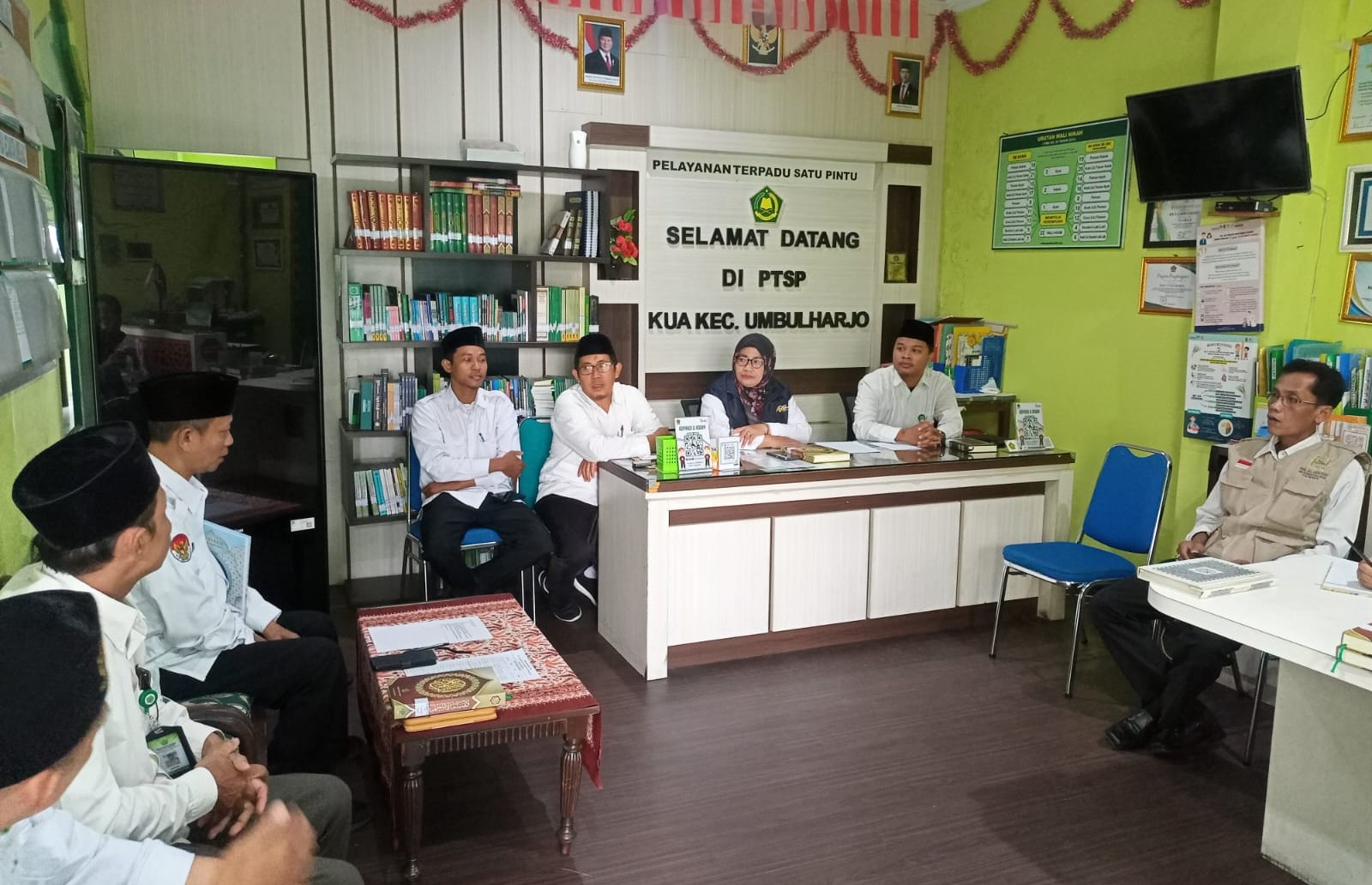Umbulharjo — Kantor Urusan Agama (KUA) Kemantren Umbulharjo melaksanakan Rapat Koordinasi dan Tadarus (Rakordasi) pada Selasa, 10 Februari 2026, bertempat di kantor KUA Umbulharjo. Kegiatan diawali dengan tadarus Al-Qur’an Surat An-Nisa ayat 60–91, sebagai upaya penguatan spiritual ASN sebelum memulai agenda kerja.